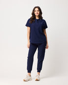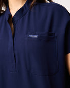 MABEL Mandarin Collar Scrub Top - Navy | SLTECH™